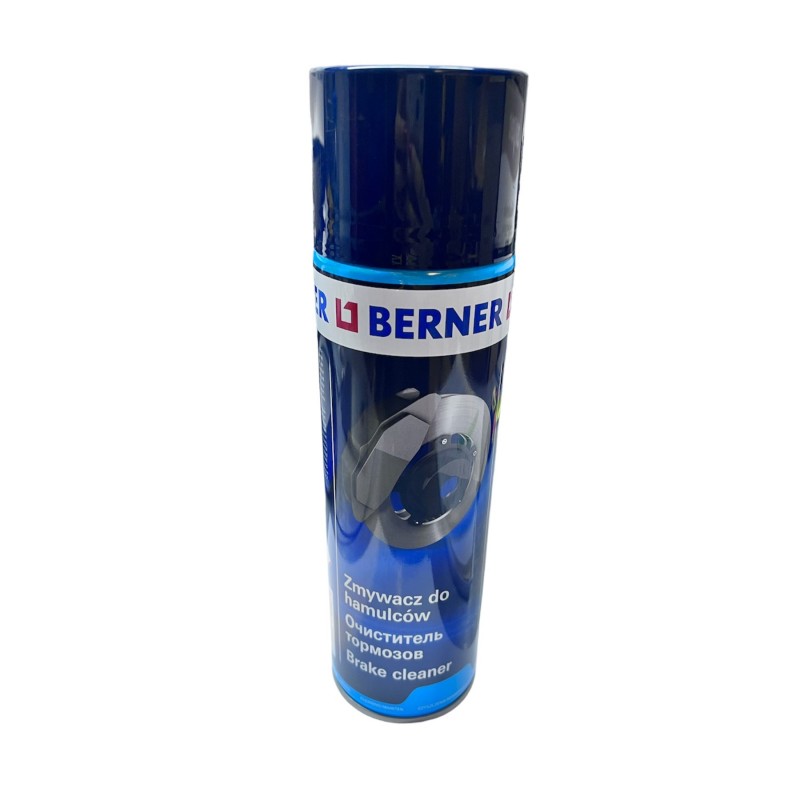 Zmywacz do hamulców marki Berner w opakowaniu ciśnieniowym o pojemności 500 ml.