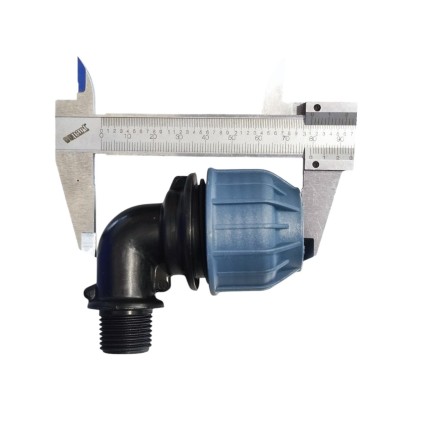 Kolano 90° przejściowe PP 25 mm x 1/2" zacisk x GZ czarno-niebieski Jason 0703840
